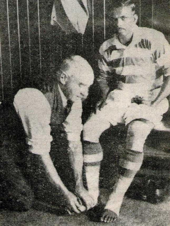 Salim was also on the back page of Scottish papers that day in a photo with the Celtic legend Jimmy McMenemy, then trainer, bandaging the Indian’s feet before the Galston game. Curiously, when this photo was reproduced in an Indian newspaper in September 1976, the commentary said it showed “a European feeling Salim’s feet to check what magic they contained. In colonial India a white person touching an Indian’s feet was an extremely rare occurrence.” The Indian journalist wasn’t to know but the elderly gentleman had more than his fair share of magic in his own feet back in the day!