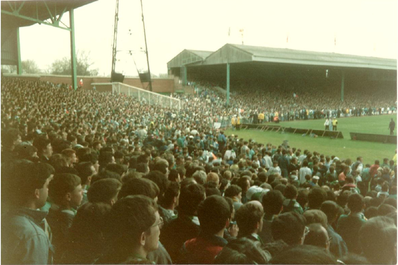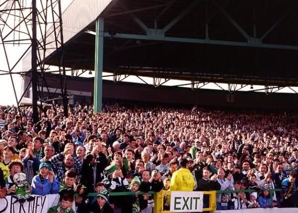 A jam-packed Celtic End viewed from the Jungle early 1990s