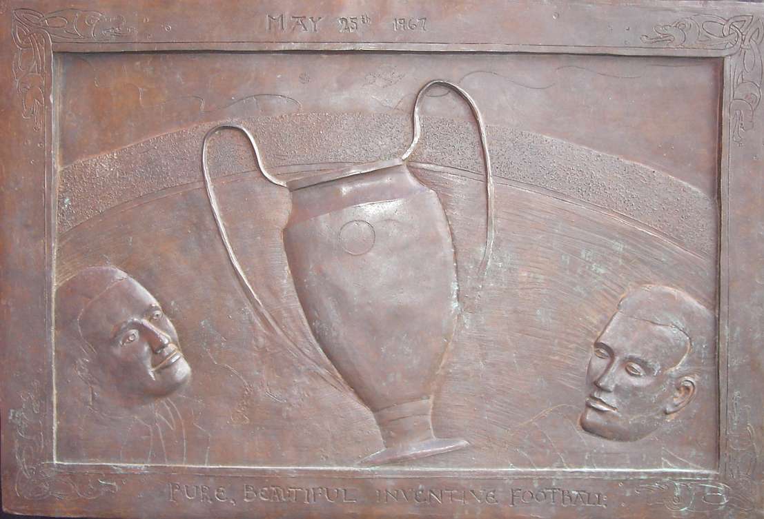 This plaque celebrates the club’s greatest achievement, being declared Champions of Europe on 25th May 1967. With Jock Stein’s quote describing the style of play which took Celtic to the pinnacle – Pure Beautiful Inventive Football – it has the big cup itself, a packed Celtic Park and images of Jock Stein and (what looks like) Billy McNeill.