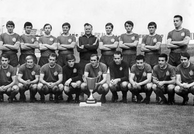 Celebrating victory over Dukla Prague in the European Cup semi-final