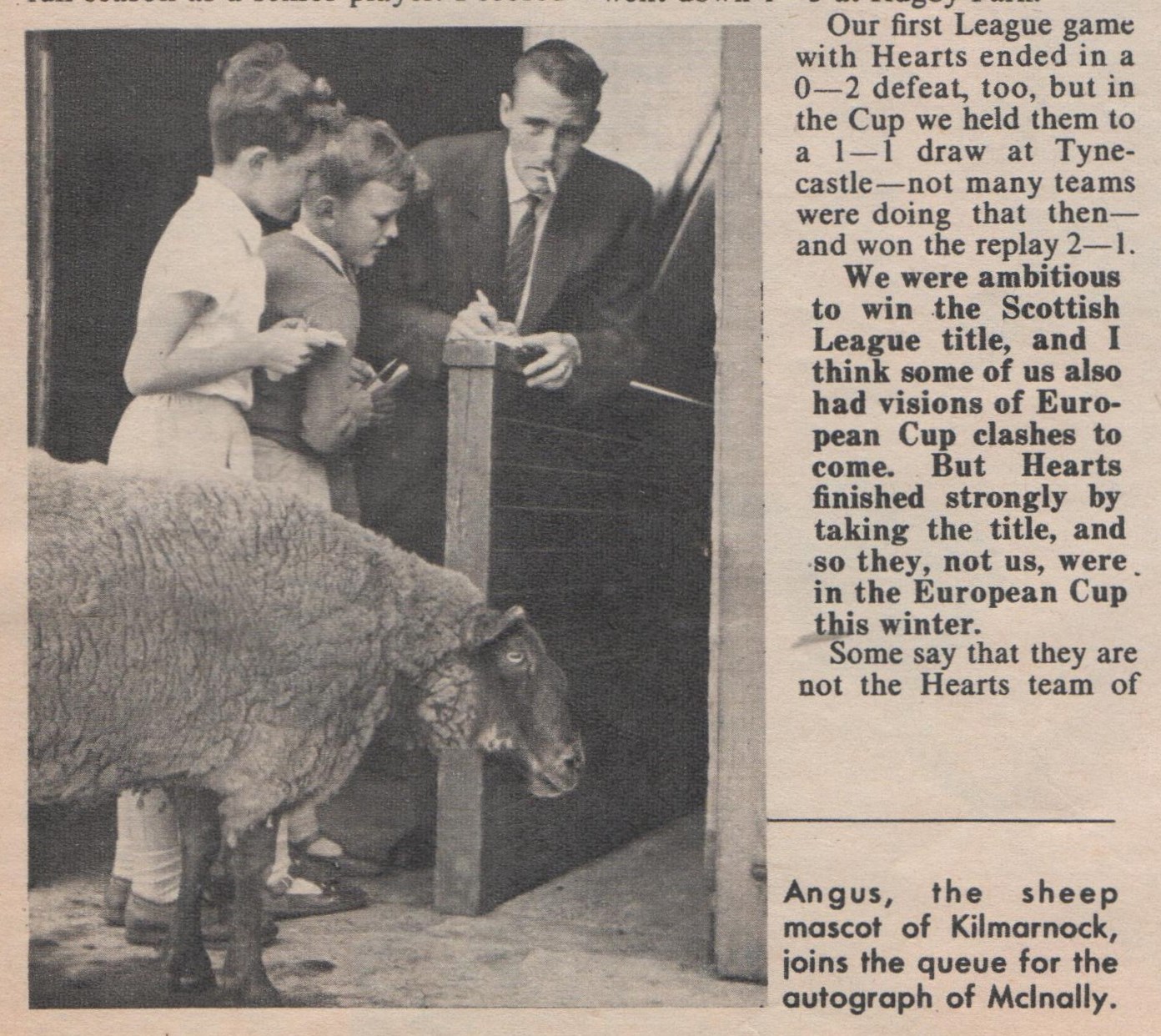 Not only is he smoking while posing for the camera, the picture also features Killie’s mascot sheep. Maybe that’s why the Rugby Park mutton pies are so popular . . .