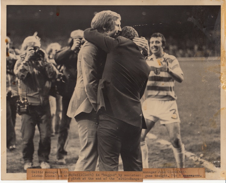 4-2 game Billy McNeill and John Clark hug at game’s end Posted on 26/11/2014 CELTIC MOMENTS 751 × 608