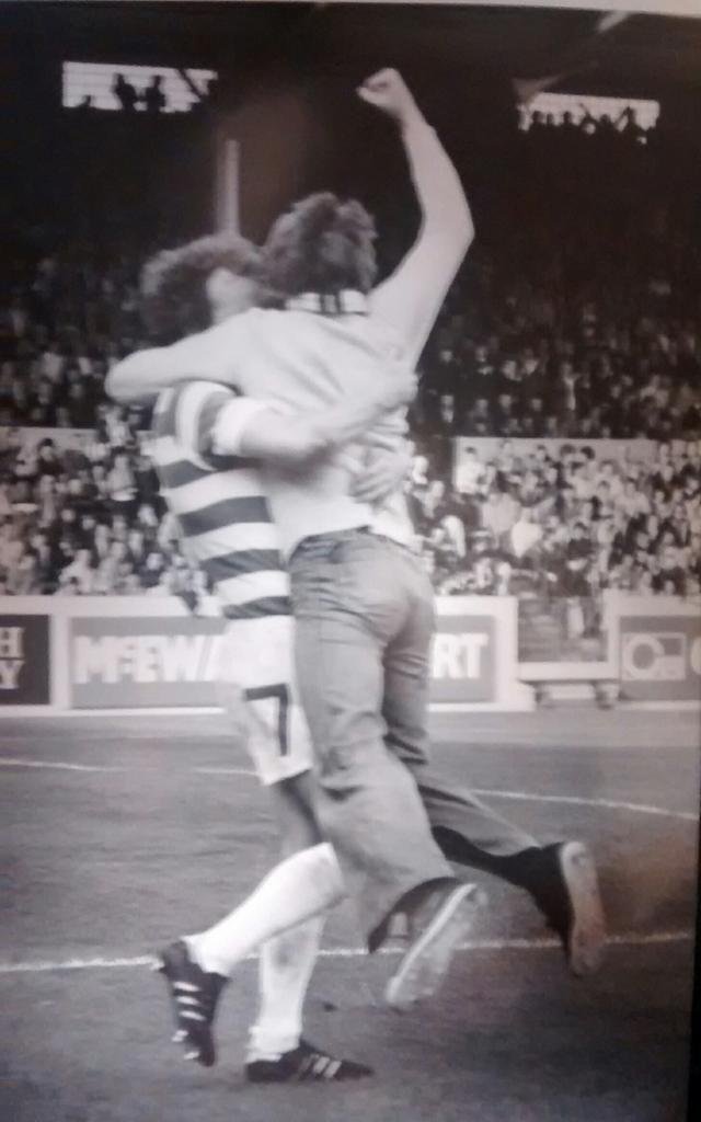 Johnny Doyle and fan celebrate on pitch at Pittodrie 1979 Posted on 13/11/2014 CELTIC MOMENTS 640 × 1024