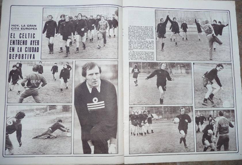 These photos appeared originally in the Spanish sports paper Dario Grafico Deportivo in the build up to Celtic’s visit to the Santiago de Bernabeu Stadium in 1980 for a European Cup tie. Celtic were set to defend a 2-0 victory from the first leg at Celtic Park. Being put through their paces by Billy McNeill and physio Brian Scott can be seen – among others – Bobby Lennox, Johnny Doyle, Danny McGrain, Frank McGarvey, Murdo McLeod, Roy Aitken and Roddy MacDonald.