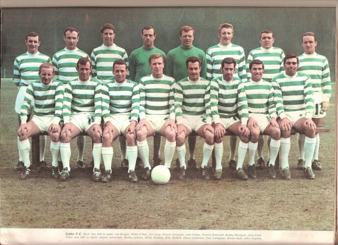 The draw was secured – the league was won! According to the Herald “They showed real champion class by wiping out a two-goal deficit.” The Celtic support celebrated long into the night – and some even stole Kilmarnock’s own League flag won in 1965 from the Rugby Park flagpole (it was returned anonymously a few days later). The following Saturday Celtic recorded a famous 4-0 victory over Rangers in the Scottish Cup Final to land ‘the Treble’ for only the second time. The leading goalscorer that memorable season was Willie Wallace who scored 34 in all competitions, followed closely by Bobby Lennox with 30.
