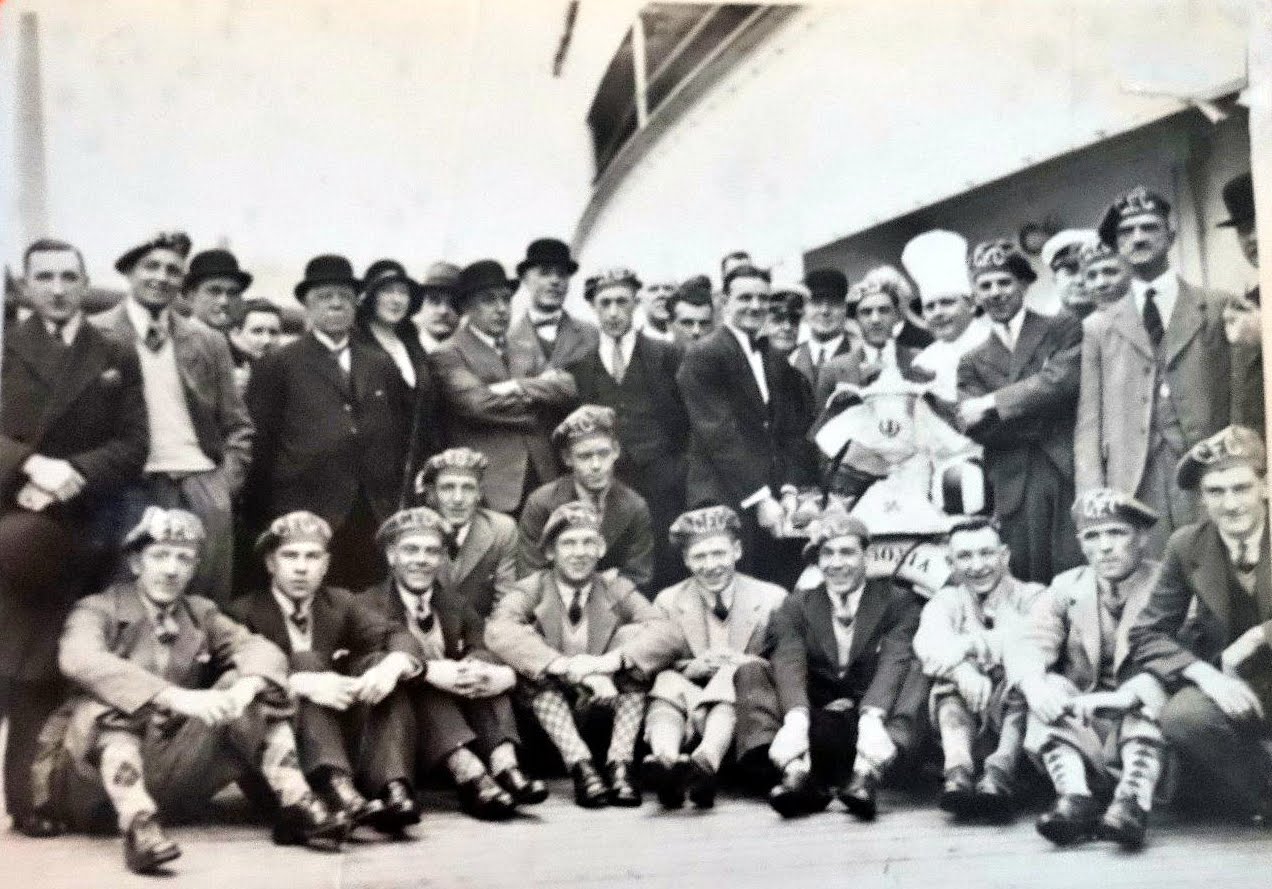 Caps Aff – Will joins the Celtic squad in modelling their new headgear en route to the United States in the summer of 1931