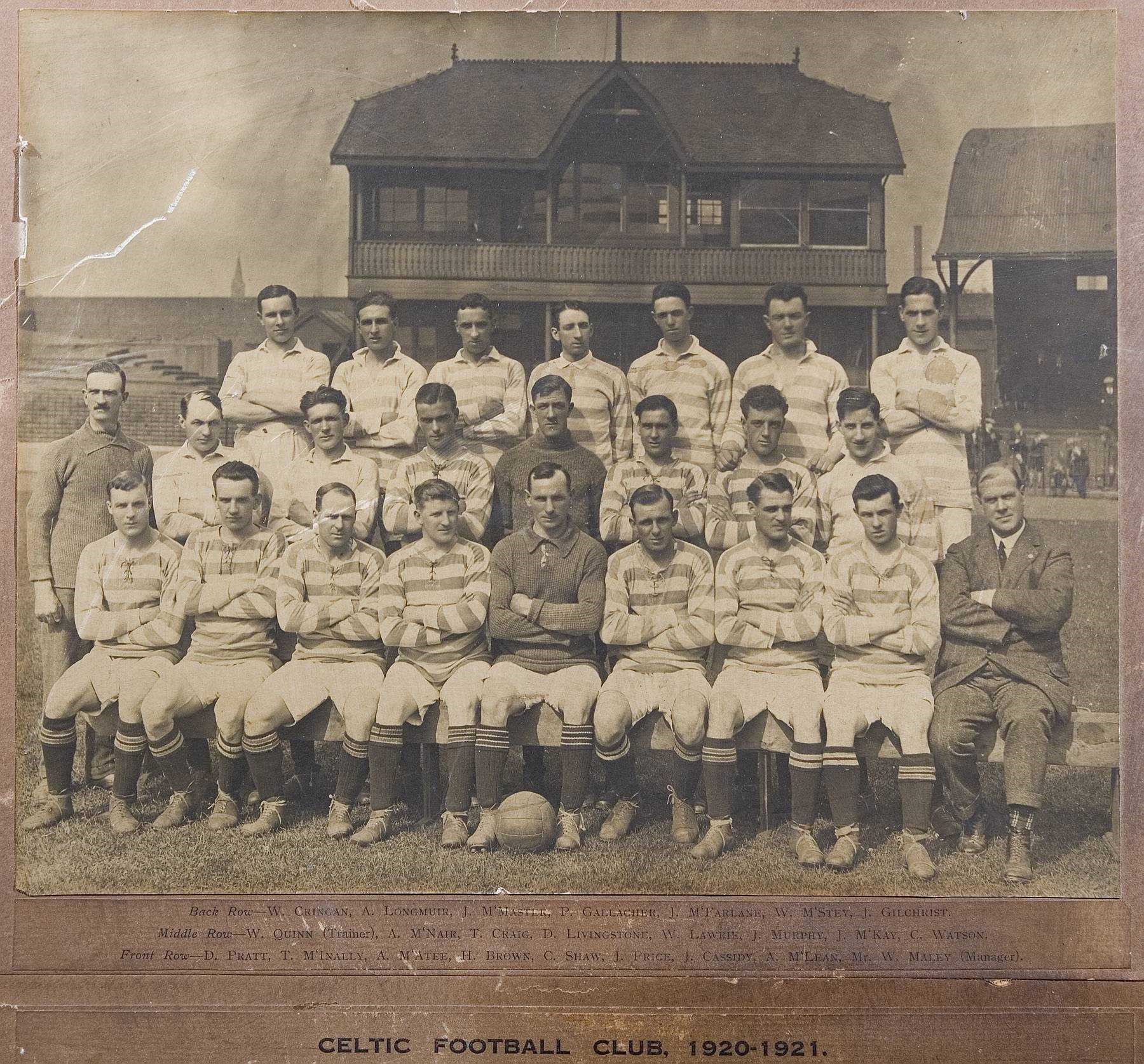 The Celtic squad of 1920-1 post in front of the old Celtic Park pavilion