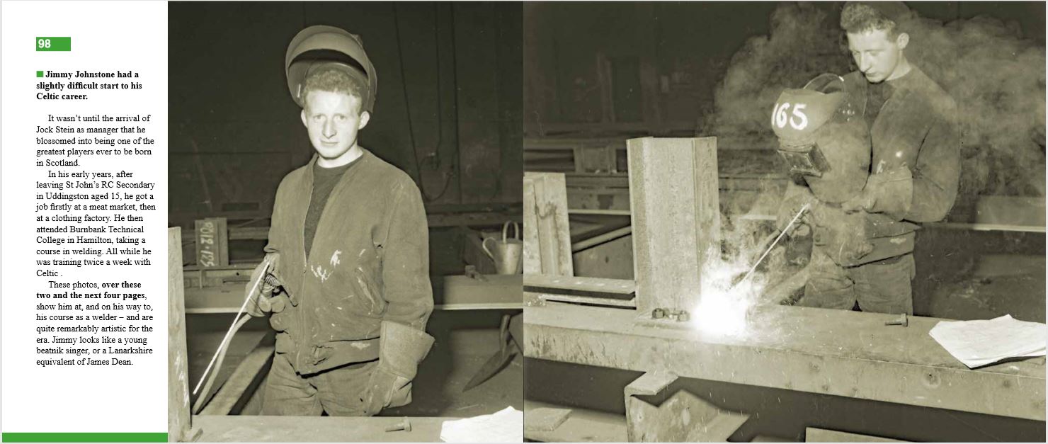Steve Finan has certainly lived up to expectations, high as they were. ‘Celtic In the Black and White Era’ is a glorious publication of over three hundred top quality photographs through the most exciting and interesting decades in Celtic history. Starting with Johnny Thomson in the 1920s through to Johnny Doyle in 1979, this is a catalogue of everything from beautifully crafted action photos to hum-drum publicity shots which, because of the subjects involved, prove fascinating in themselves. Bobby Lennox in his mother’s hairdressing salon? Jimmy Johnstone in his welding gear? Billy McPhail in his restaurant? Tommy Gemmell out hunting? They’re all here and much, much more.