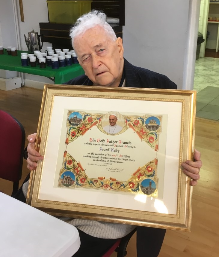 The last time Frank was able to visit Celtic Park was for a dinner at the No.7 restaurant in April 2017.  When he reached the incredible milestone of his 100th birthday the following year, he received a papal blessing from Pope Francis to mark the occasion.  Now, at the grand old age of 102, Frank happily follows the Celts on television from his Maryhill home.  He is part of that band of Celtic supporters who have been lucky enough to have witnessed the club win nine league titles in a row for the second time – although there are few among that number who used to enjoy a post-match pint in the company of Willie Maley in his pub!