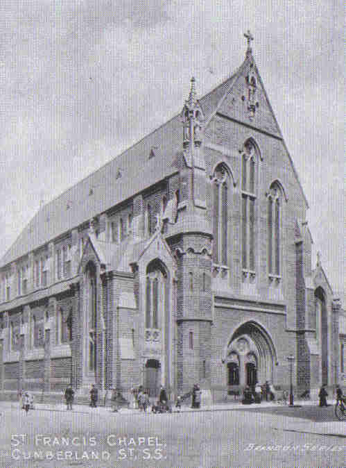 Growing up Catholic in the Gorbals in the 1920s, the focal point of the community was the parish that surrounded the massive St Francis Church on Cumberland Street.  At the time the church had twelve priests, seven masses were held on a Sunday and the parish extended to over 27,000 people.  It was quite common for the crowds attending mass to be so large that the huge building, which still stands today, couldn’t contain them and hundreds would have to listen on from the surrounding streets.
