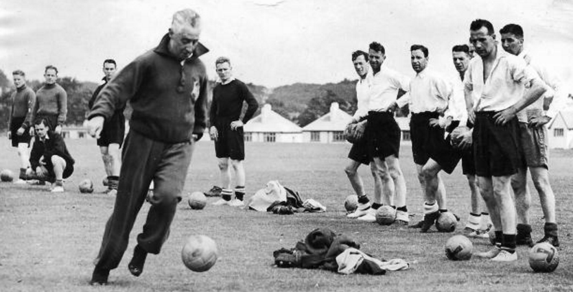The Birmingham club had been relegated from Division 1 the previous season. When Hogan took charge in November 1936, at the age of 54, he faced an uphill struggle in persuading the existing team of the value in adopting a close-passing game. Villa finished 9th that season but the following year it was a different story. Hogan’s teaching and intensive training brought about a transformation. Villa won the Second Division by four points from Manchester United and also made it to the FA Cup semi-finals. On their return to the First Division, Hogan led his team to a comfortable mid-table position of 12th. When war brought the next football season to a crashing halt, Villa decided to terminate Hogan’s contract. Despite his relative success he had failed to win over a Chairman who had once told him: “I’ve no time for all these theories about football. Get the ball in the bloody net, that’s what I want.”