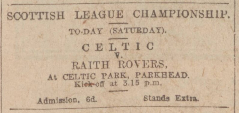 So it came to pass that on 15th April 1916 that Celtic kicked off against Raith Rovers at 3.30pm, then travelled to Motherwell to play again at 6.30pm. If Celtic were to win both games and Rangers failed to beat Partick Thistle at Firhill on the same day, the Bhoys would be declared Champions.