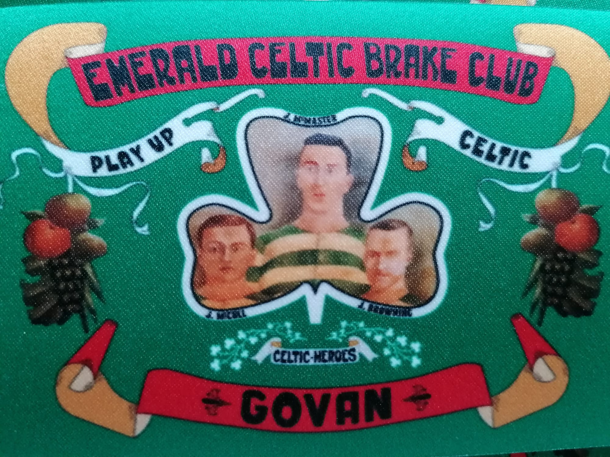 The banner of the Emerald Celtic Brake Club based in Govan, Glasgow which was crafted in 1913.