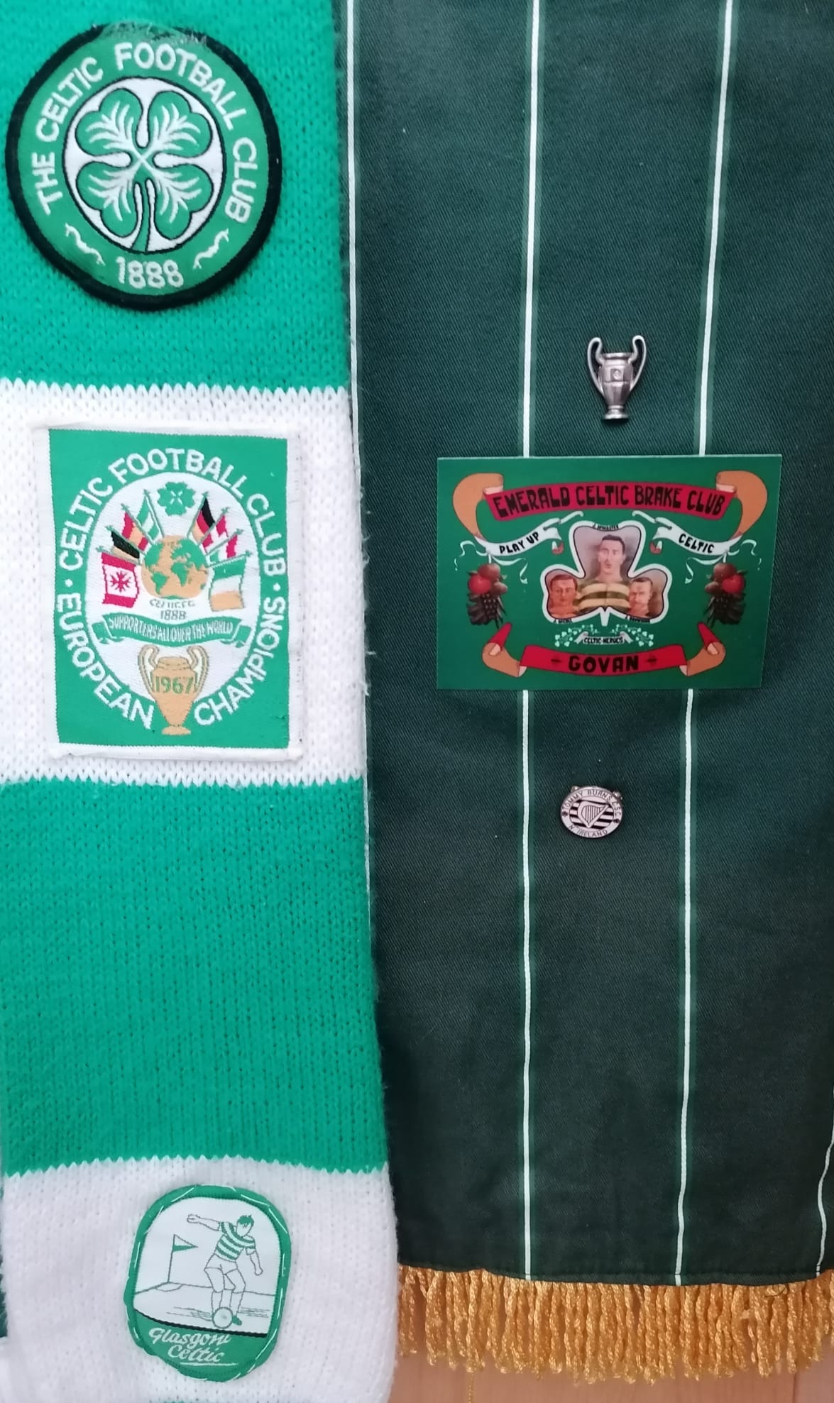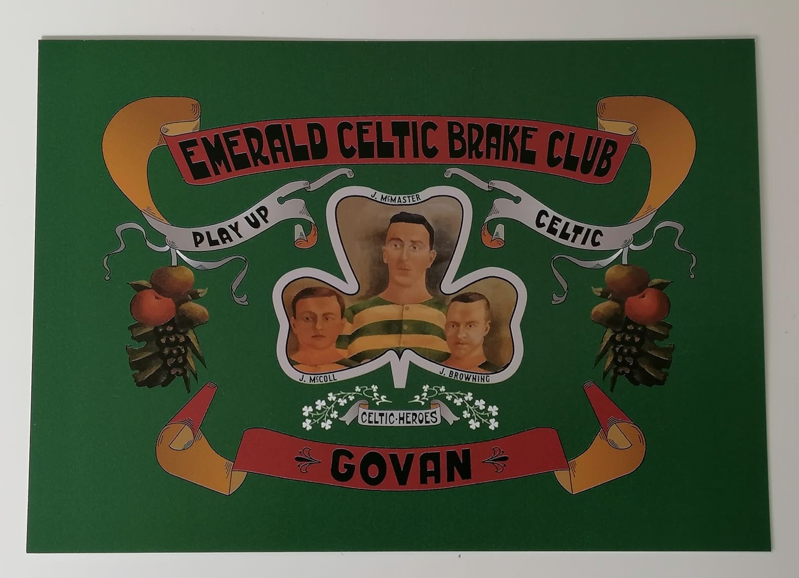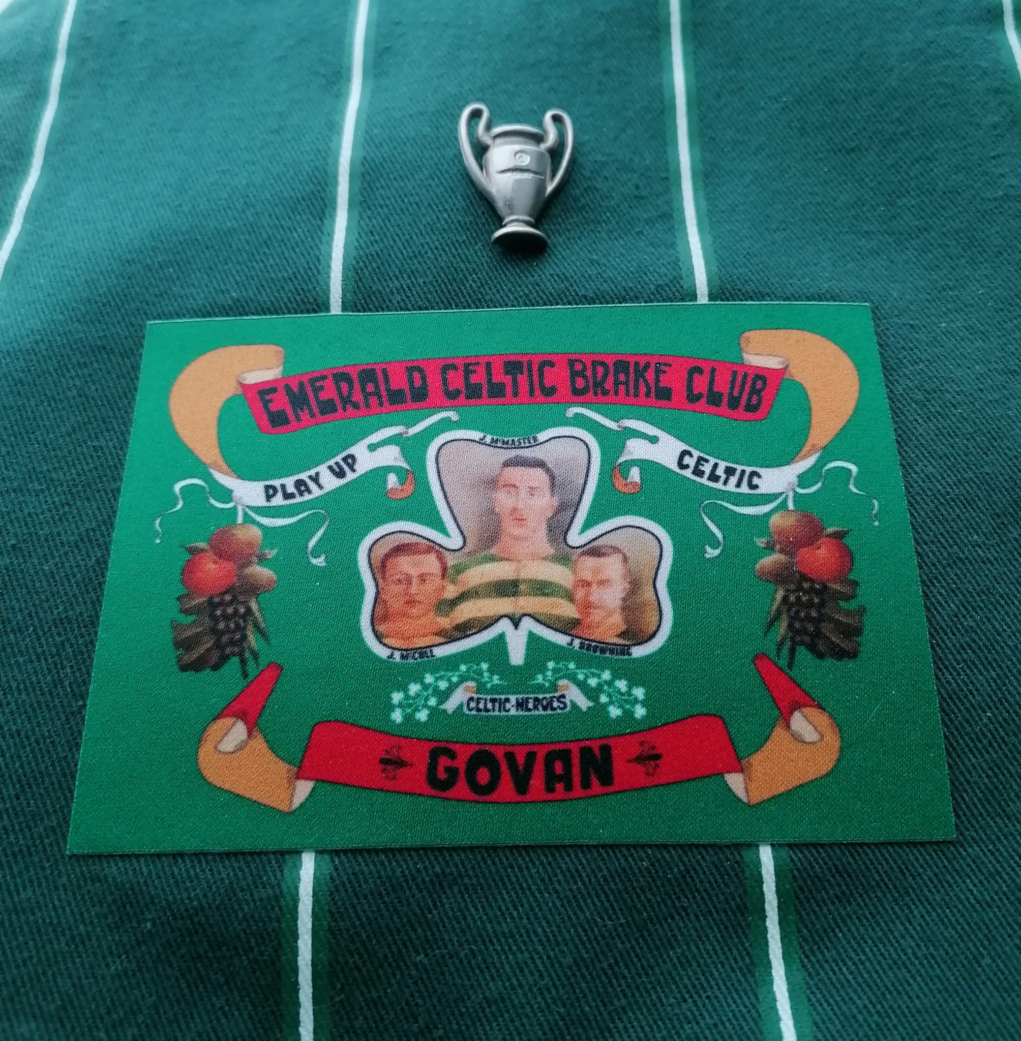 The banner of the Emerald Celtic Brake Club based in Govan, Glasgow which was crafted in 1913.