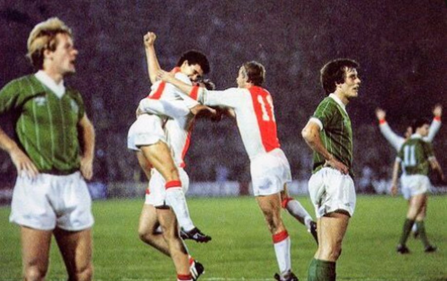 Cruyff is still regarded by many as the greatest European footballer of all time. Mastery of the ball was his principal asset leading to him once being dubbed “Pythagoras in boots” because of his penchant for precise, angled passes. He was also an effortless goal-scorer but he was not the only star in the Ajax firmament in 1982 as the Dutch club maintained their reputation for fostering outstanding youth talent. 19 year old striker Wim Kieft was the current European Golden Boot holder and other Dutch internationalists in the team included Gerald Vanenburg, Peter Boeve and experienced ‘keeper Piet Schrijvers. Future internationalists Marco van Basten and Frank Rijkaard didn’t make it off the bench against the Celts. The Ajax midfield was made up of a trio of superb young Danish players – Soren Lerby, Jesper Olsen and Jan Molby – who in good time would move on to Bayern Munich, Manchester United and Liverpool respectively.