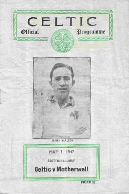 A couple of other war-time games stick in my memory. I watched both of them from the Jungle and both were won thanks to Celtic comebacks: down 0-2 at halftime to struggling Albion Rovers, Celtic fought back to win 4-2 … and, trailing to Hamilton Accies, Celtic scored twice in the last five minutes to win 2-1. Both goals against Hamilton were scored by Gerry McAloon, and he always was a favourite of mine. Gerry actually played in the Empire Exhibition Cup for Brentford, played for Celtic during World War 2, and went back to Brentford afterwards but re-joined Celtic in the trade for George Paterson. I also have the vague impression he was used as make-weight in Charlie Tully’s arrival from Belfast Celtc in 1948. In later life Gerry McAloon worked as the janitor in Sacred Heart in the Calton, but sadly died of hyperthermia after collapsing in the street in mid-winter.