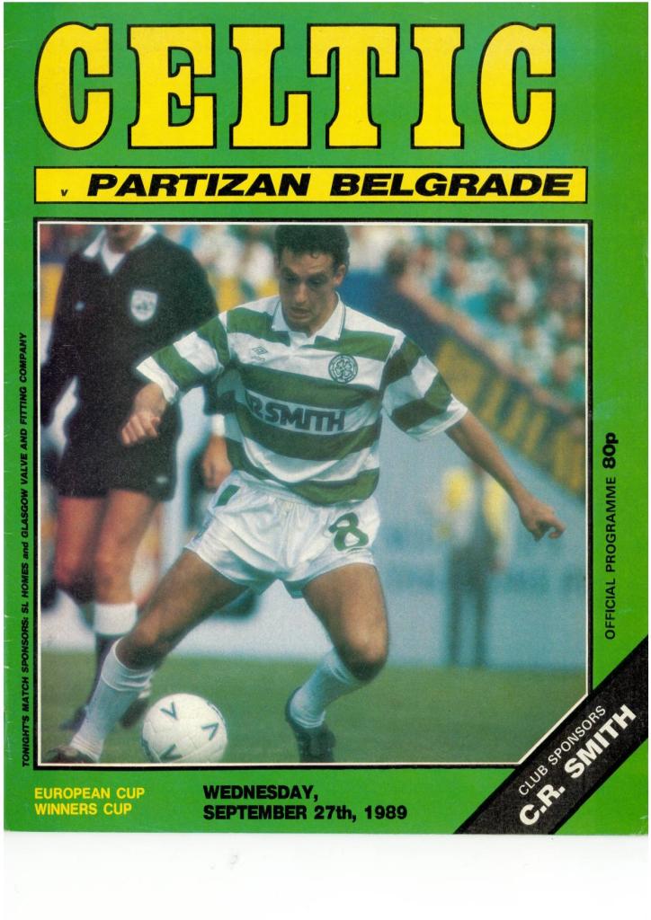 Urged on again and again by the crowd and captain Aitken, Celtic continued the onslaught on the Partizan ranks right through to the dying seconds . . . until possession was lost and the tables were turned, yet again. There was an awful inevitability that ‘the poofy guy with the gloves and the tights’ would secure retribution for the abuse he’d received all night from the home support. And so he did – heading past Pat Bonner in the 89th minute to make it 6-6 on aggregate. The crescendo that had roared approval at Dziekanowski’s final goal was replaced with deflation on a scale rarely witnessed at Celtic Park, where the eerie noise of the small band of celebrating Partizan players and subs in front of the main stand could be heard in all quarters of the old ground.
